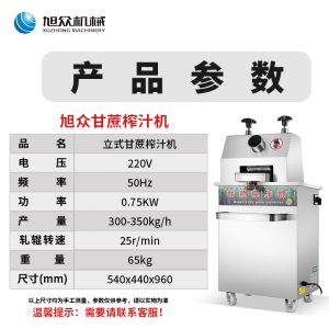 立式甘蔗機(jī),該機(jī)采用不銹鋼材質(zhì)加工,機(jī)頭部件都經(jīng)過嚴(yán)格的防銹仿腐蝕處理,整機(jī)采用全封閉結(jié)構(gòu),可內(nèi)置蔗渣桶,保證渣汁不外泄,安全、干凈、衛(wèi)生。 適合賓館、卡拉OK廳、水果店、冷飲店、涼茶店、車站、超市等服務(wù)行業(yè)壓榨各種甘蔗之用。