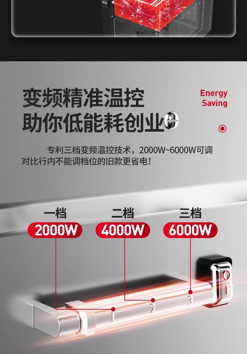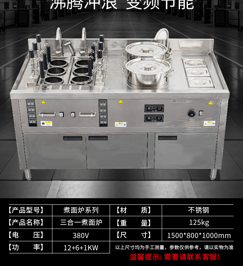 三合一煮面爐,全新升級,自動升降再次沸騰,僅需3秒。316精鋼加粗發熱管、升級噴流技術、低功耗變頻技術。煮面爐三合一升級,沸騰沖浪、變頻節能。