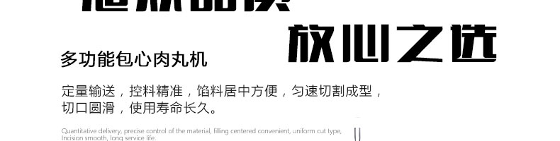 SZ-602包心肉丸機(jī),可生產(chǎn)包心魚丸、包心豬肉丸、撒尿牛肉丸、爆汁小魚丸等多種球形醬湯類包餡產(chǎn)品。操控性強(qiáng)、穩(wěn)定性高、出品率穩(wěn)定;可抽皮增餡,做到皮薄餡多。