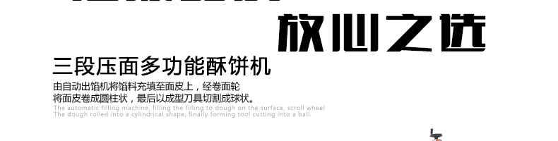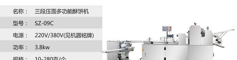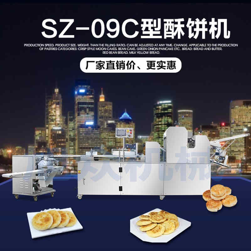 SZ-09C三段壓面蘇式月餅機(jī),生產(chǎn)速度、制品大小、重量、皮餡比例可隨時調(diào)整、變更。適用于蘇式月餅、綠豆餅、老婆餅、蔥油餅、鮮花餅、肉松餅、金華酥餅等。適用于大、中型糕餅生產(chǎn)廠家,免費提供工藝技術(shù)。